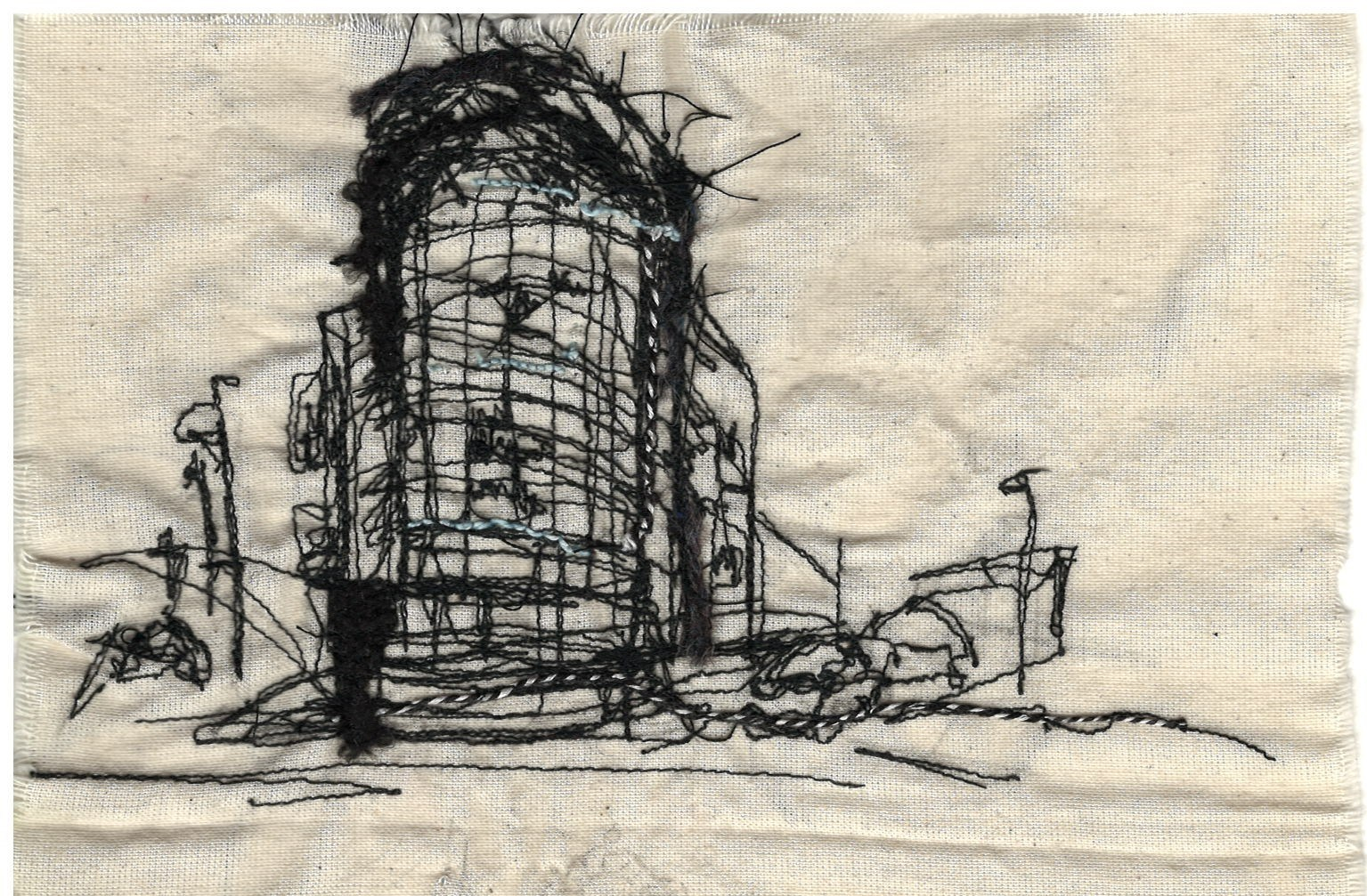 I was pleased with my first thread drawing however I decided to produce a finalised sample for presentation. I decided to use imagery from my primary research to refer to aspects of the village.
