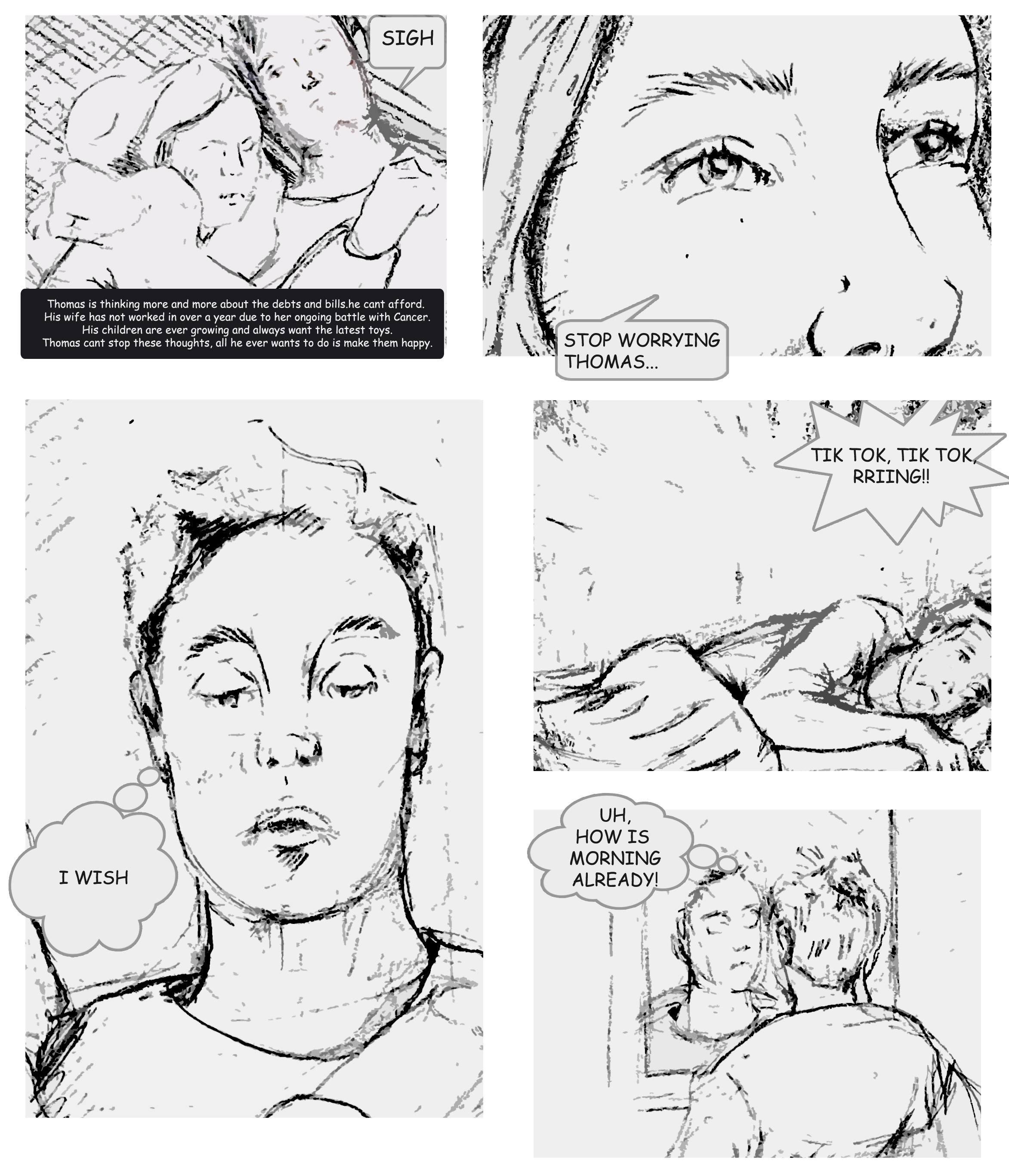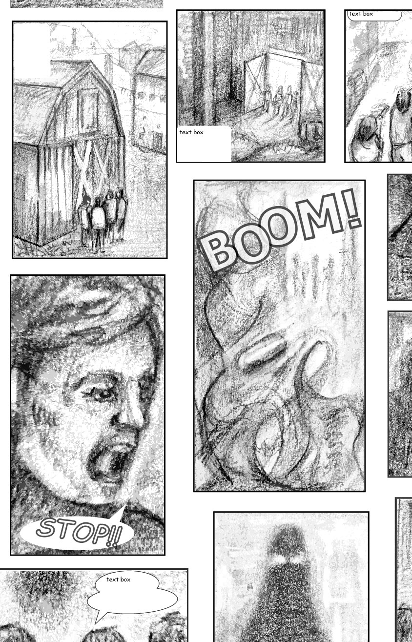 The first draft has been produced in three parts, focusing on key scenes in the beginning, middle and end. This development is explored freehand with the aid of digital; we are exploring best ways bring this to life though we are certain these scenes will be re-created using my sharpie style in colour. We dont want to rush any parts of the project, however we have set deadlines for certain events such as Comic Con.